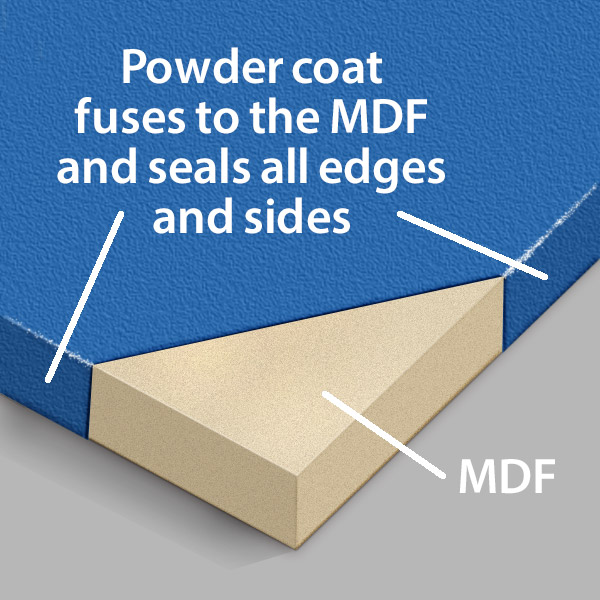 Powder coating was once only used for metal parts and surfaces. DuraGarage perfected the use of powder coating on MDF (medium density fiberboard) in a unique, environmentally friendly, patented process.